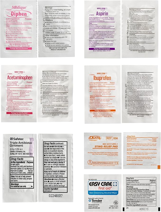 - Contains a wide array of medications to treat pain, inflammation, and common allergies