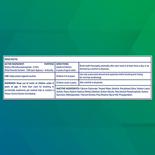 - ACTIVE INGREDIENT - Sodium Monofluorophospate .76% fights and protects against cavities for heathier teeth - ANTICAVITY
