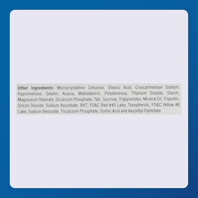• INGREDIENTS: Each tablet provides vitamins A, C, D, E, B6, and B12, as well as thiamin, riboflavin, niacin, folate, calcium, iron, and zinc.
