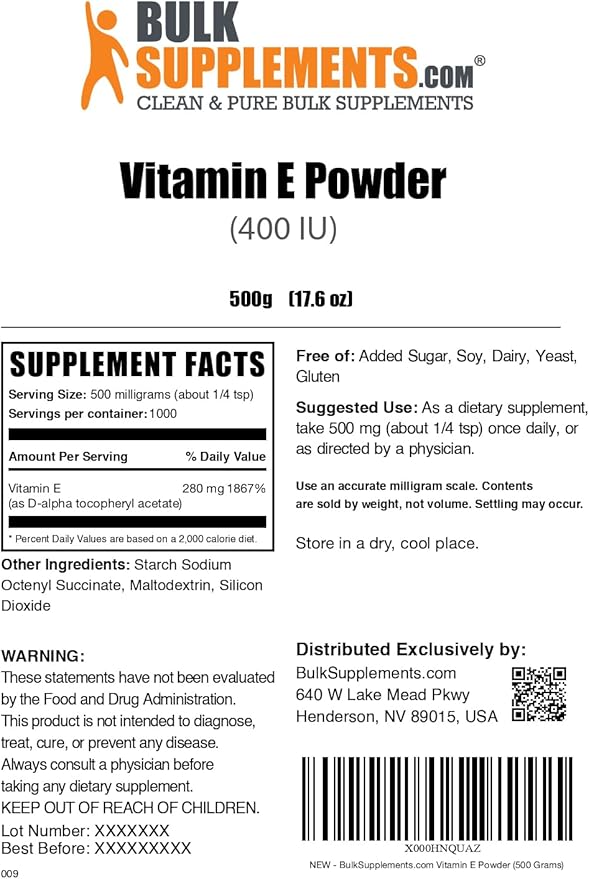 - Daily Dose of Well-being: Incorporating our Vitamin E powder, in Vitamin 400 IU, into your daily routine is a simple, yet profound way to invest in your long-term health. A small step today paves the way for substantial wellness benefits tomorrow.