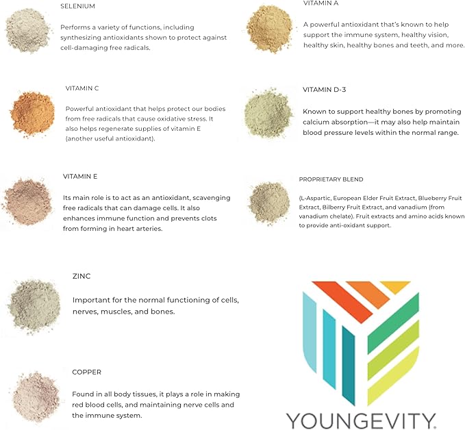- Potent Antioxidant Support » Youngevity Ultimate Selenium includes vitamins A, C, D-3, Zinc, and Copper to provide powerful antioxidant protection, defending your body against oxidative stress and promoting overall health and vitality.