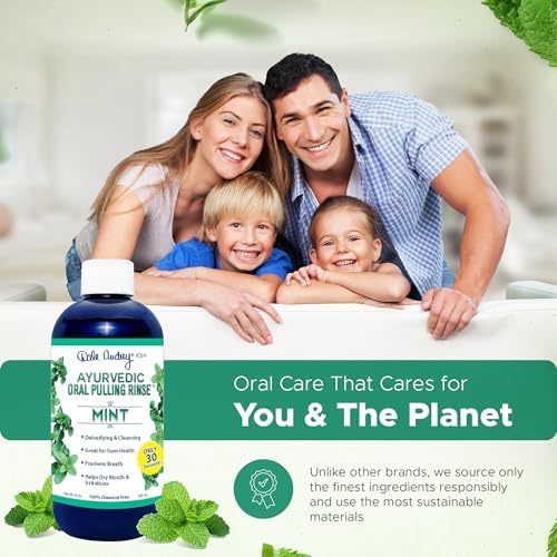 Ayurvedic Oil Pulling Rinse for Teeth and Gums | Made in USA Alcohol Free Mouthwash for Fresh Breath | Pulling Oil with Oils Extract for Teeth Whitening & Healthy Gums | Mint Oral Rinse - 8 Fl Oz