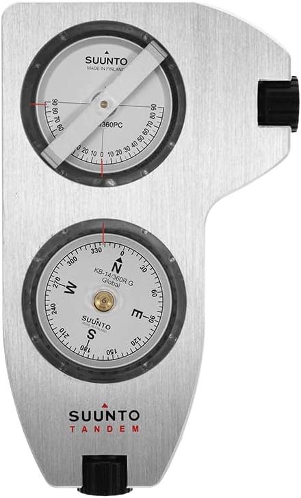 - Professional Clinometer and Compass: SUUNTO Tandem is a liquid filled precision compass and clinometer in one compact and sturdy alloy housing; Can be mounted on tripod for stable operation; Scales for inclination in degrees and %