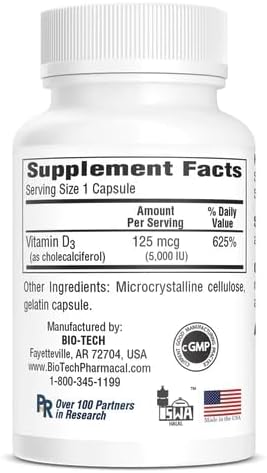 - BONE & IMMUNE HEALTH. Bio-Tech Pharmacal D3-5 (5000 IU) is a supplement formulated with vitamin D3 (cholecalciferol) that may help support bone and immune health.
