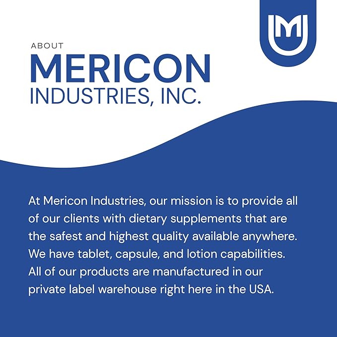 - QUALITY DIETARY SUPPLEMENTS - All of our health supplements are made in our private label warehouse in the USA. At Mericon Industries, our mission is to provide our clients with high-quality dietary supplements.