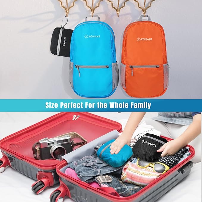 • GET THE AWARD-WINNING ZOMAKE ULTRA LIGHTWEIGHT FOLDABLE BACKPACK: With the light performance and high quality of our ZOMAKE ultra lightweight backpack,we have provided high-quality services to 500,000 people in the world and received praise from many people.I believe that our light foldable backpack will be the perfect partner in your life.You can accompany you on foot,vacation,shopping,cycling,and exercise!