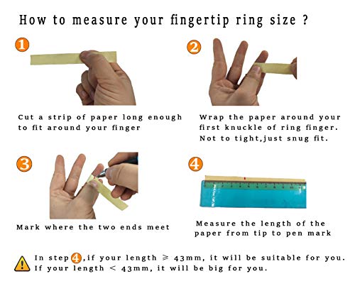 - ⚠️The size of This finger set is unadjustable. The middle size is a little big for very slim hands. Pls measure your finger size according to the instruction of our image