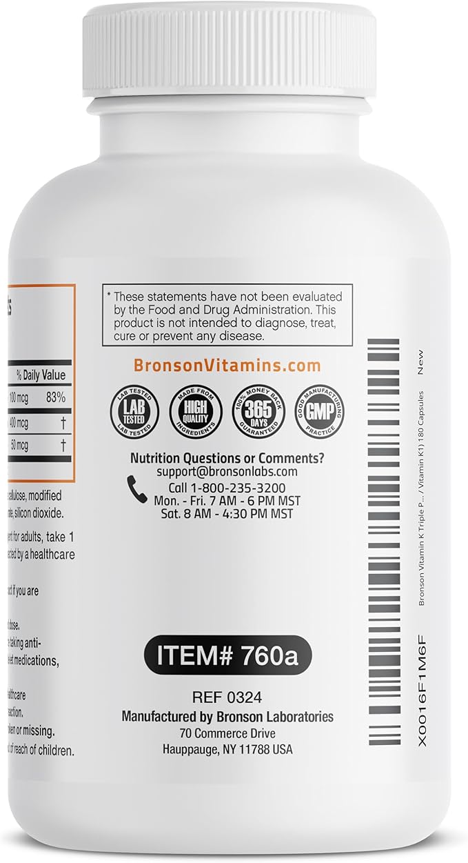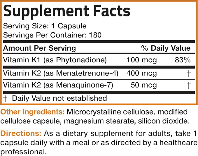 - Triple The Support Complex: Provides both Vitamin K1 and two forms of Vitamin K2, Vitamin K2 MK4 (Menatetrenone-4) and Vitamin K2 MK7 (Menaquinone-7).