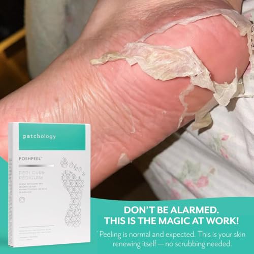 Patchology PoshPeel Pedi Cure - Foot Peel Mask Soak Treatment, Feet Peeling Mask, Pedicure Booties with Deep Exfoliation for Baby-soft Skin, Pedicure Supplies for Foot Care, 1 Pair