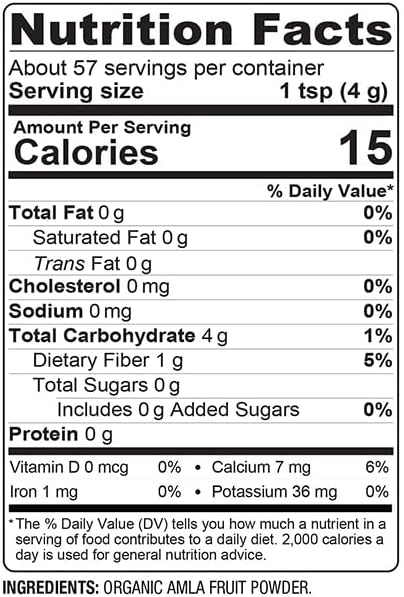 - Superfood Powder: Organic amla powder is an exotic, nourishing addition to a well-rounded diet. It delivers antioxidant support to help boost the body’s natural defenses and help fight free radicals that could cause harmful oxidative damage.