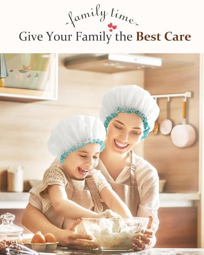 mikimini White Shower Caps for Women Long Hair,2 Pack,Large Size,Reusable,Waterproof Washable Hair Caps for Women and Girls, Super Cute and Extra Large