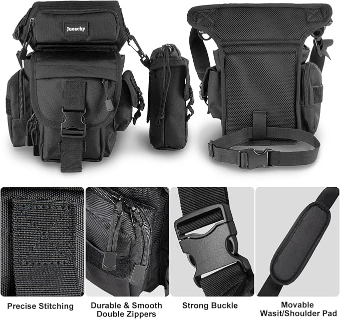 Jueachy Drop Leg Bag for Men Tactical Metal Detecting Thigh Pack with Water Bottle Pouch
