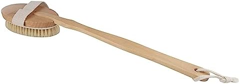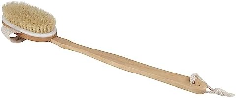 - Comprehensive Brush Set: This wooden shower brush includes two pieces with natural bristles and a removable handle. Measuring 16.9 inches in length, the brush provides an ideal tool for back scrubbing and overall skin care
