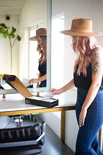 - 5x12 dimension. Flip the lid and the box turns into its own self dispenser for an easy grab and go concept, going from the box, to the hair.