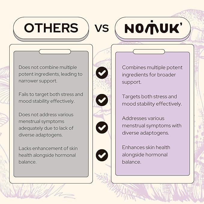• Nomuk Happiness Commitment: NOMUK Woman Hormo Balance capsules are only made with the good stuff: including the highest quality ingredients, vegan friendly, gluten-free, non-GMO, and cruelty free. If you don’t love these supplements within 30 days, we’ll be happy to help!