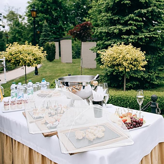 - Not only for party supplies: Elegant white food covers are not just for full year outdoor kitchen, birthday and pool party, garden BBQ, picnic, but also for RV, patio dinners, camping accessories, taco bar, outdoor movie nights and party buffet.