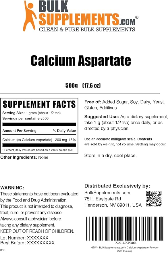 - Daily Wellness Support: Elevate your wellness with our Calcium Aspartate powder, a source of calcium for essential daily support. Expertly crafted, our Calcium Aspartate Anhydrous powder provides a balanced blend to help you feel your best each day. Make it part of your routine and discover the benefits of this power-packed supplement!