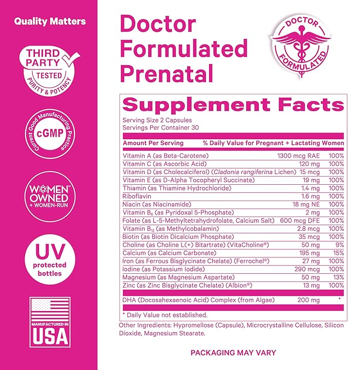 - Prenatals aren't just vitamins for women - baby reaps the benefits, too. Folate supports red blood cell formation and helps prevent major birth defects - it's so essential that OBGYNs recommend a folate supplement for women while trying to conceive. DHA is essential for the development of baby’s brain and eyes; Iron helps supply oxygen to your body (and your baby!); B-complex vitamins support fetal brain development and energy for mom.