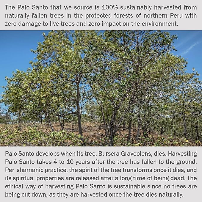 - SUSTAINABLY HARVESTED. We source our sacred incense from Northern Peru and only from artisans who ethically grow, harvest and treat their prized trees. Live trees are never cut down or tampered with. Only the fallen branches and trunks are collected.