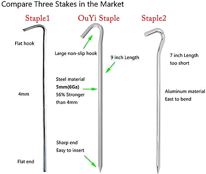 - MULTIPLE USES - Idel for anchoring yard outdoor camping, tents, canopy, fencing, garden/landscap edging,shelters, tarps, little dogs, garden netting, gazebo anchors or secure holiday decorations,Christmas Lights,inflatables, picnic blanket,camping tent, garden net, canopies, netting, garden fabrics, twine cloches and other garden structures and more to hard ground or on the beach, keeping them in the shape and in place against wind.