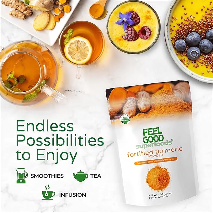 - AROMATIC AND DELICIOUS: Fortified turmeric with black pepper adds depth of flavor to soups, stews, dressing, and sauces with a mildly spicy taste and hints of pepper, lemon citrus, and musk. Add mouthwatering appeal and dazzling color to baked goods, curries, energy balls, hummus, golden milk, or just add a pinch to your morning smoothie or tea drink