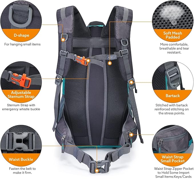 • Multifunctional & Convenient Straps: The straps of the hiking backpack can be used for tying up your pack or hanging a sleeping bag, mat, hammock, tripod, and other travel gears