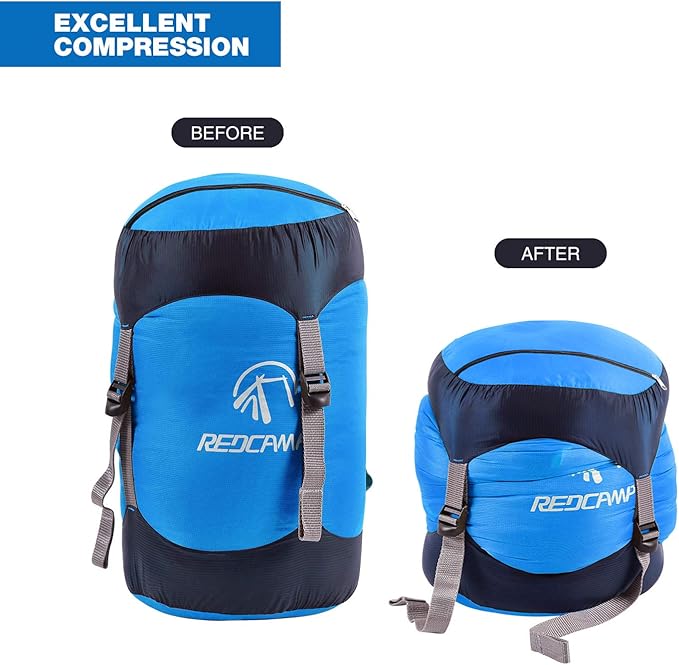 - ▲Superior Material: Our compression stuff sack is made of light weight Nylon material, high quality, water resistant, durable fabric and steady for longer lifespan. Weights only 110g.
