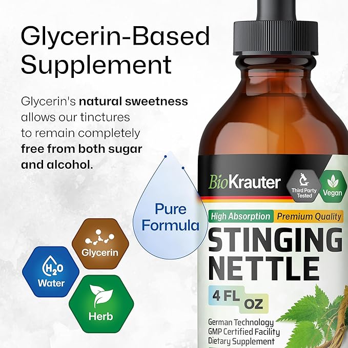 - Stinging Nettle Tincture for Urinary Health: BioKrauter Stinging Nettle liquid drops, made from Urtica Dioica (commonly known as stinging nettle), support urinary health.