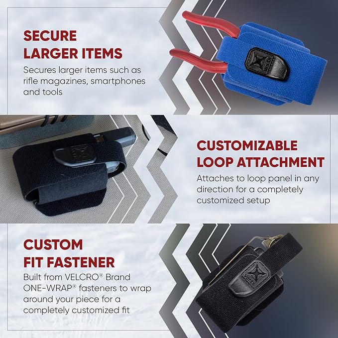 - ORGANIZED TACTICAL GEAR - The MAK LOK is sized to fit larger items such as rifle magazines, smartphones, and med kits but can be adjusted to fit smaller items.