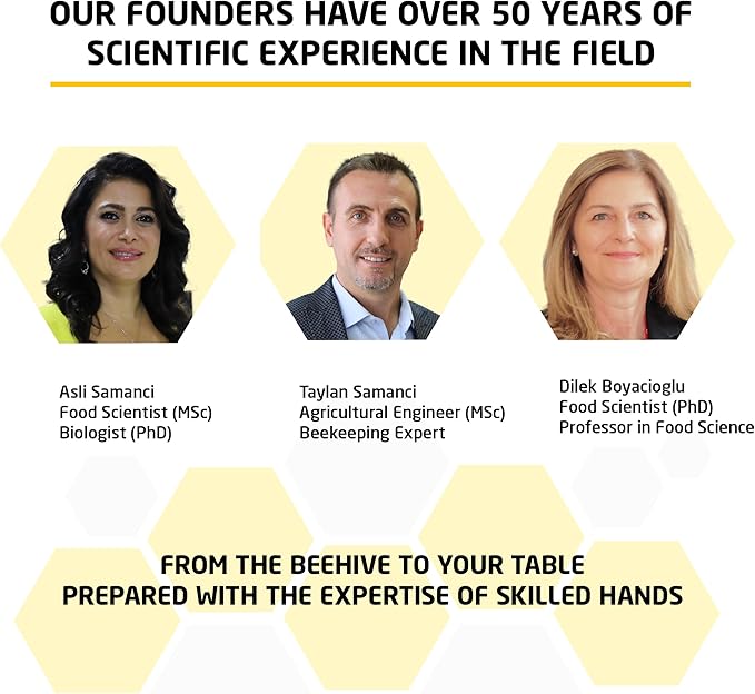 • Pure, Sustainably Sourced and Fair Trade: Produced by “Contracted Beekeeping” to assure the highest quality and traceability from our hives to your table. Also tested for purity, antioxidant content and compliance with food safety standards. No GMOs, No chemicals, No artificial No colors, No sweeteners, No gluten, No soy, No dairy, No sugar added, No Gelatin. Our factory is periodically audited by accredited third party “DQS GmbH in Germany” and our latest audit score is 98.06 over 100. Made in Türkiye. KTUN: 8683813003288