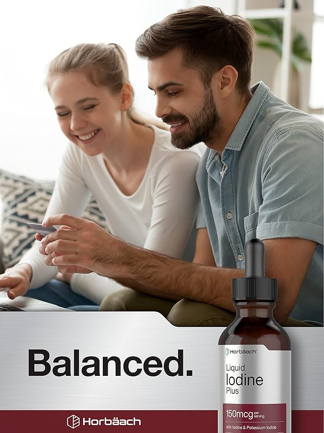 Horbäach Liquid Iodine Drops | 2 fl oz | 150 mcg | Iodine & Potassium Iodide Liquid Tincture | Vegetarian, Non-GMO, Gluten Free Supplement