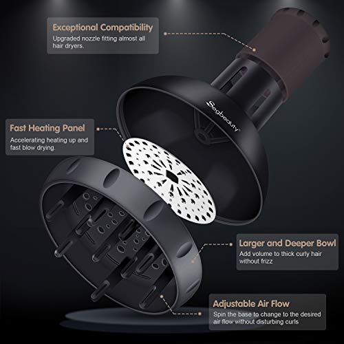 - Deeper and Bigger Bowl: Our diffuser with its deeper and bigger bowl has a better grip on your hair, thus avoid the annoying problem of disturbing your curls. Helps bring back more defined curls and waves to your hair