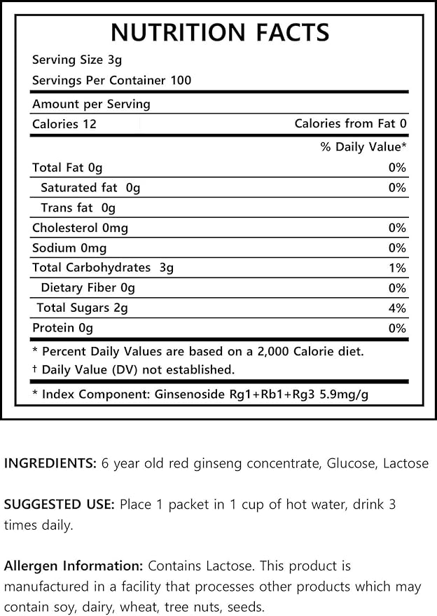 - HIGH GINSENOSIDE CONTENT (5.9mg/g) - Unique ingredients found in the Panax ginseng, also called Korean ginseng. Ginsenosides are known to be the principal active ingredients of ginseng.