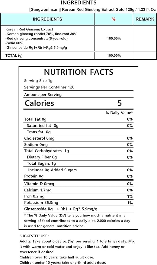 Gangwoninsam] Korean Red Ginseng Extract Gold 120g / 4.23 fl. oz – New Package Design, Contains 100% Pure Korean 6-Year-Old Red Ginseng Root Extract