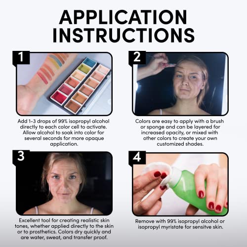 12-Color Flesh Tone Alcohol-Activated Palette, Tattoo Cover, Highly Pigmented Professional SFX Makeup for Film, Theatre, TV
