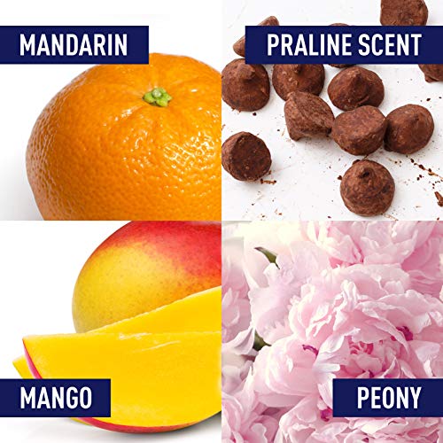 • This Floral Fruity fragrance has a blend of mango, blood orange, mandarin orange, peony, violet leaves, paradisone, chocolate, cedar, praline, and musk