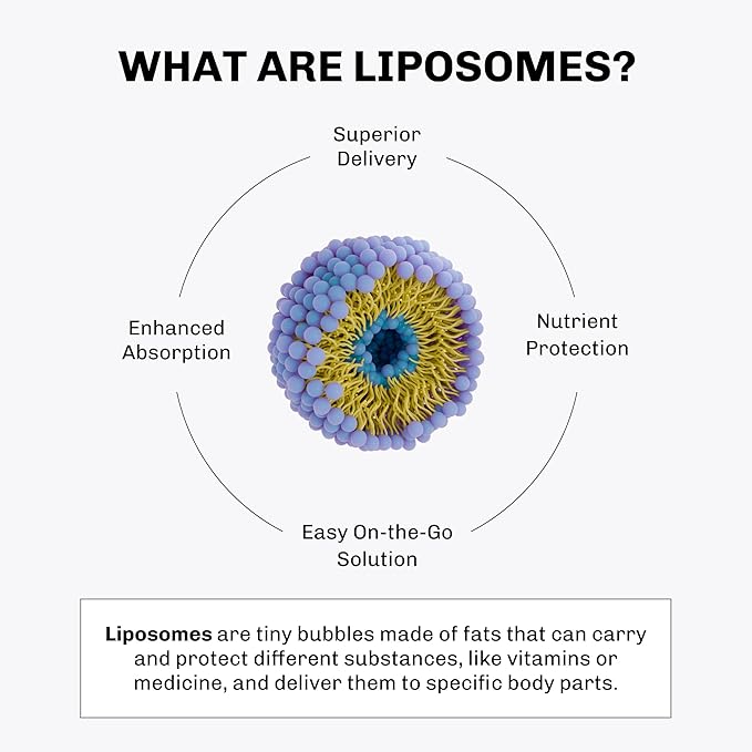 - Highest Absorption Rates: Liposomal supplements provide the highest bioavailability (up to 90%) of any oral delivery system of nutrients, compared to the 10-20% bioavailability typical of traditional pill-based supplements