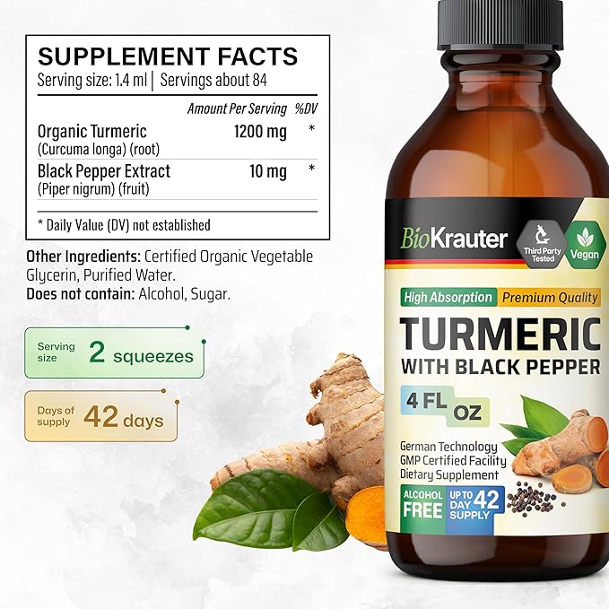 - Turmeric Tincture for Overall Support: BioKrauter turmeric and curcumin liquid, made from Curcuma longa (commonly known as turmeric), supports overall health.