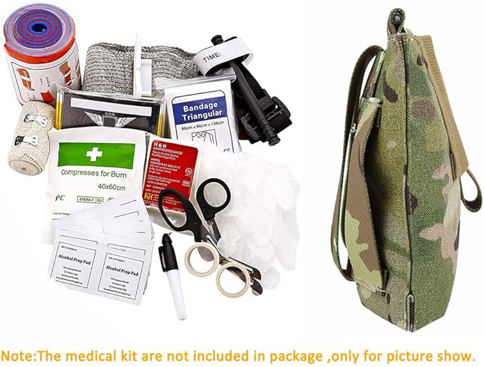 • Slim but can hold many necessary items,you can put 1 C.A.T Tourniquet 1 Israeli pressure bandage 1 pack of Celox 1 chest Needle D 1 chest seal and 1 set of latex gloves and etc in it.