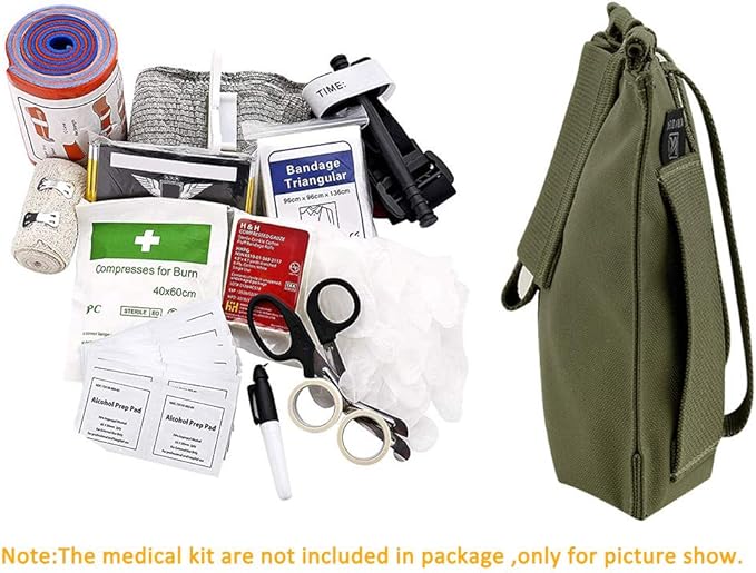 • Slim but can hold many necessary items,you can put 1 C.A.T Tourniquet 1 Israeli pressure bandage 1 pack of Celox 1 chest Needle D 1 chest seal and 1 set of latex gloves and etc in it.