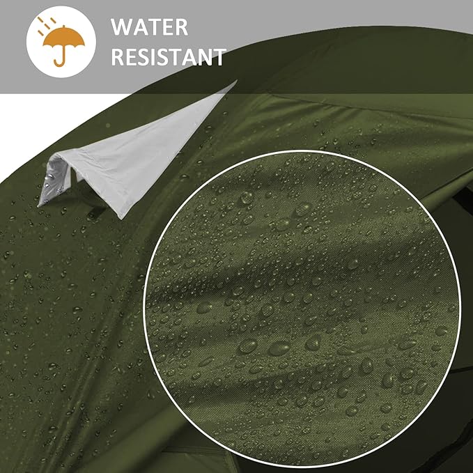 • Weather resistant:seam taped Construction makes an impenetrable barrier against Rain and prevents leakage. Welded floor Design elevates the bottom of the backpacking tent to protect you from wet grounds; full-coverage rainfly for added protection against rain.