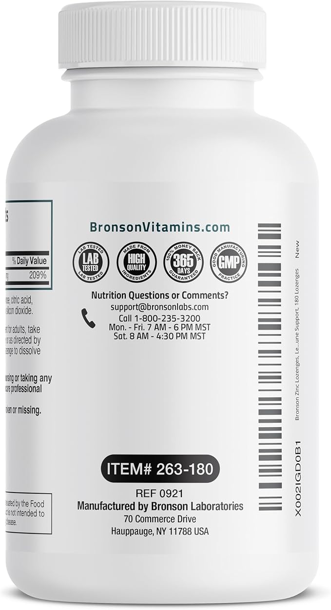• Fast Acting Lozenges: Bronson’s great tasting lemon formula provides fast acting lozenges that are absorbed quickly and can be taken at any time. Zinc Lozenges help coat the mouth and throat for a soothing effect.*