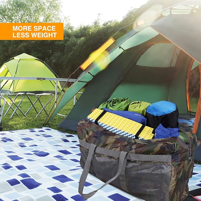 • Large Capacity &Lightweight: Up to 96L with dimensions of 31x12x16'/80x30x40cm; It can be folded into a compact carry pouch of 8.3x6.7x1.58'/21x17x4cm. Weighs only 0.97lbs/440g, and 60lbs weight capacity