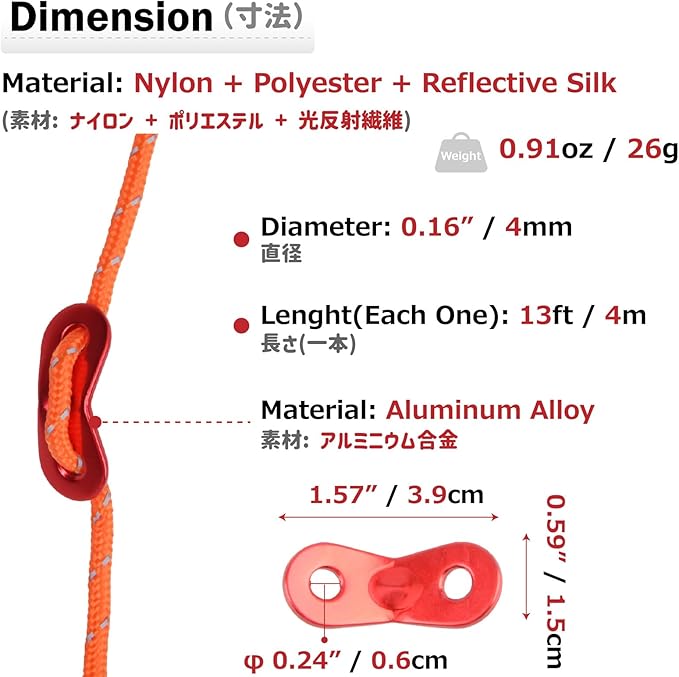 - π± PACKAGE CONTENT: 12 x 13.12ft(4m) guylines with adjuster, 2 x pouches