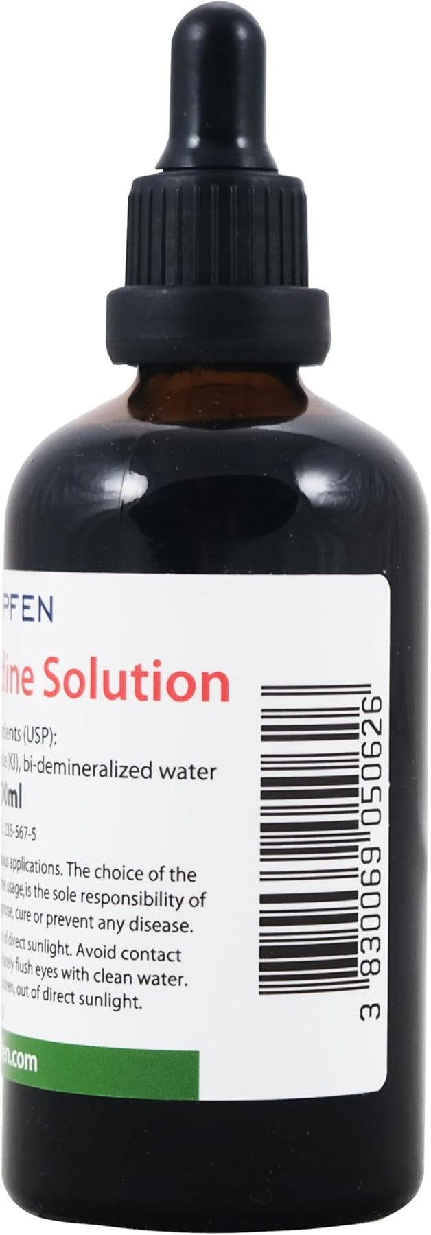 - 3.4 Fl Oz or 100ml. Consisted of 2.2% of Iodine & 4.4% of Iodide in demineralized water. Pharmaceutical grade ingredients.