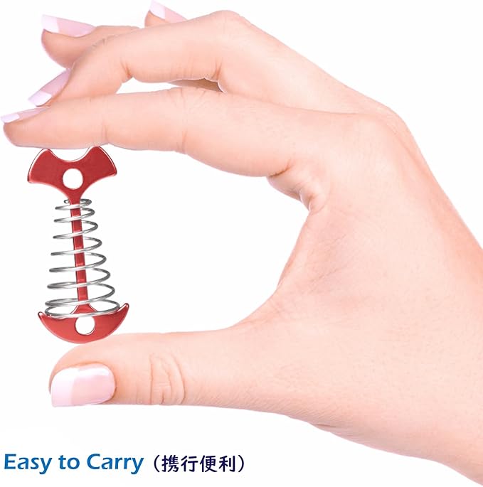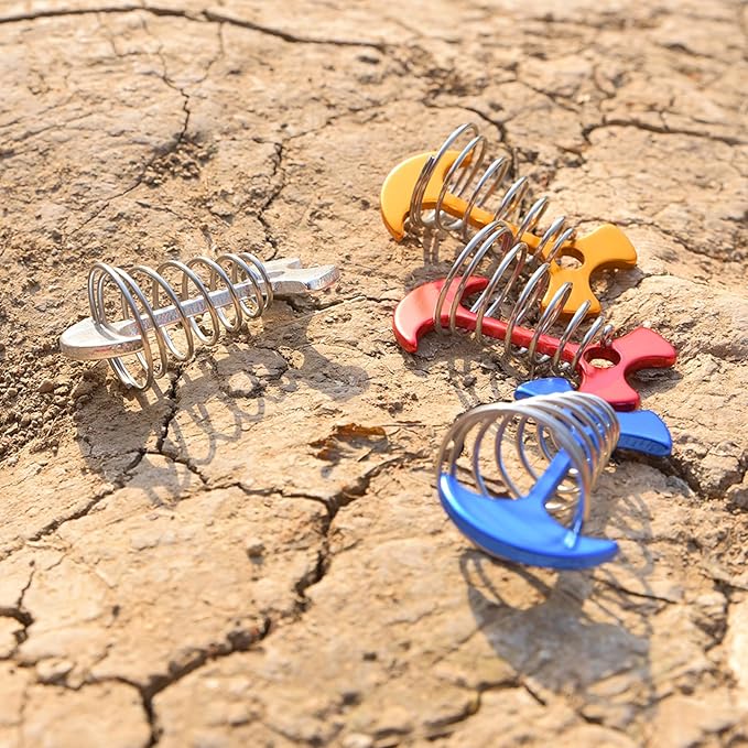 - ✅ MATERIAL -- The deck tent stakes and carabiners are made of high-quality aluminum alloy, durable, corrosion-resistant. Repeated use of stainless steel spring is not easy to deform, high elastic and more firm.