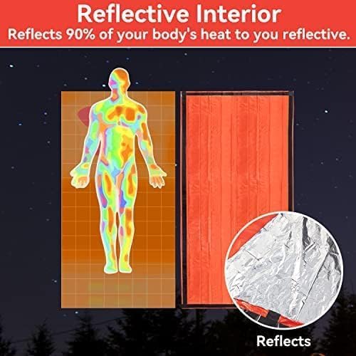 - Multipurpose use: It can be a survival emergency bag, poncho, emergency shelter and more, suitable for your out bag.Emergency sleeping bags perfect for emergency situations where warmth or protection from all-weather conditions is required. Helps prevent hypothermia and shock by retaining/reflecting up to 90% of a user's body heat. The bright orange color of the outer shell of this emergency blanket is essential to help find you