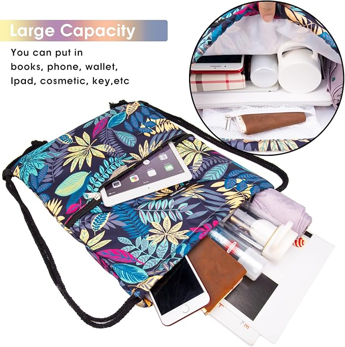 • THICKENED DRAWSTRINGS FOR COMFORT --- Thick drawstrings prevent digging into your shoulders and help reduce your shoulder burden. Furthermore, drawstring closure allows you to store things quickly and take them in and out easily.