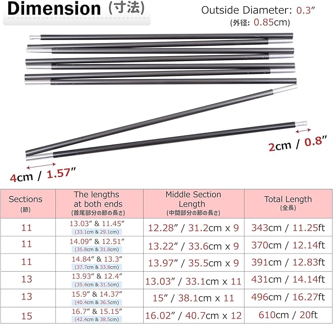 • 🦜 ASSEMBLED POLE SET: Specially Designed for your easy usage to fit your tent, it's assembled, save your energy and time to install, open directly to replace whole fiberglass or aluminum tent pole