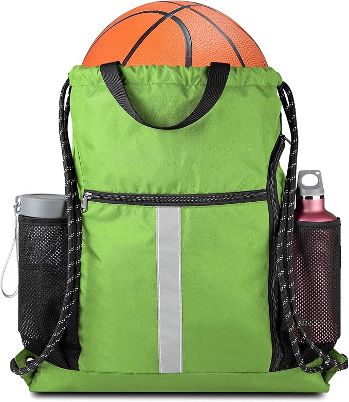 - Handle Design and Reflective Strip:Our dark green gym sack bag has 2 handy carry handles allow for hand holding or hang it on the wall or door, very convenient for your use. Also the extra verticle reflective strips can enhance the high visibility to ensure your safe while in dark or dusk. Greatly reduce your chance of being hit at night.
